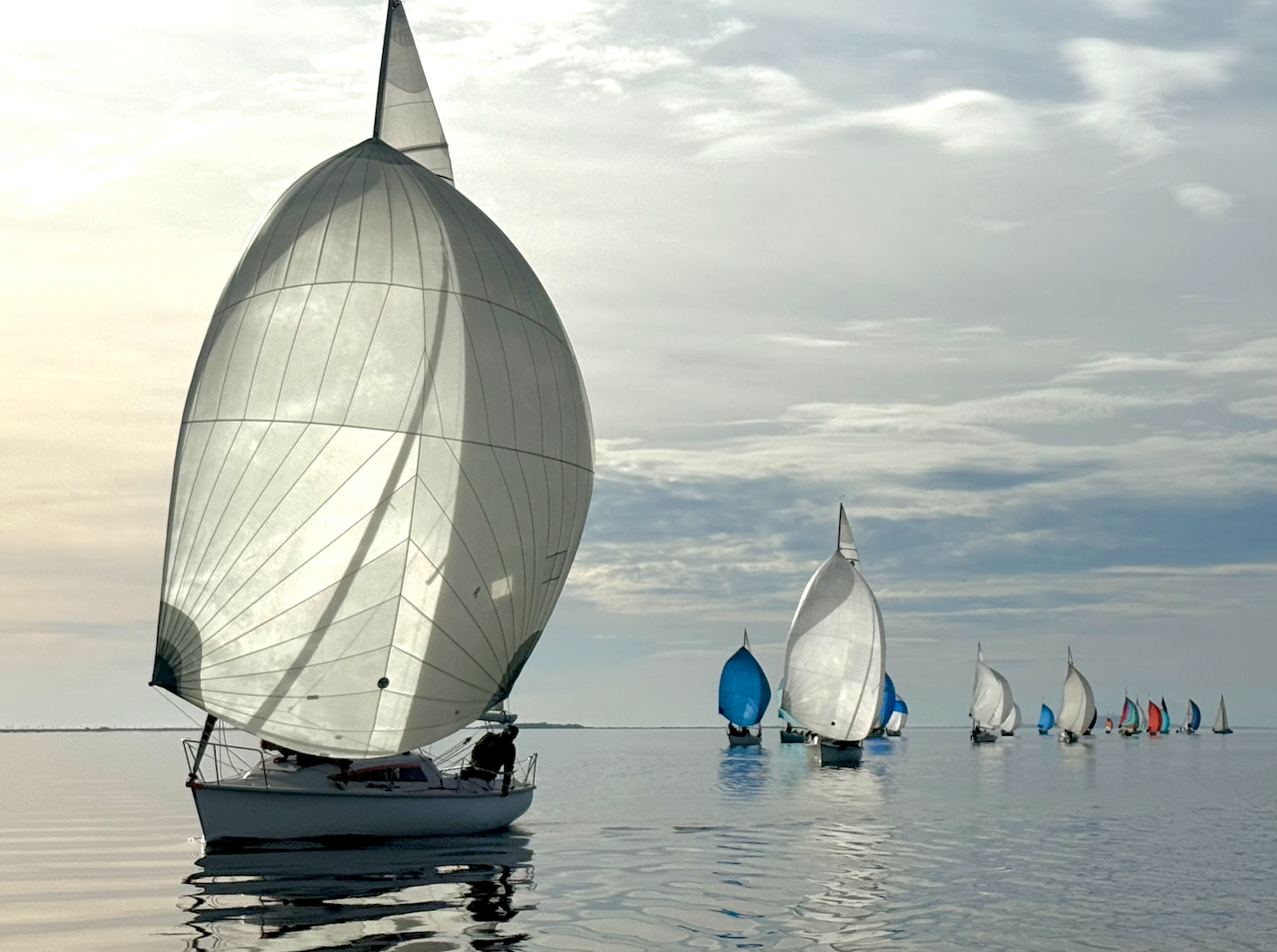 Changement de parcours réalisé avec brio par le comité dès le deuxième tour suite à une bascule et nous continuons jusqu'à 4 tours pour un total de 8,5 milles, les arrivées s'étalant de 14h15 à 15h30.